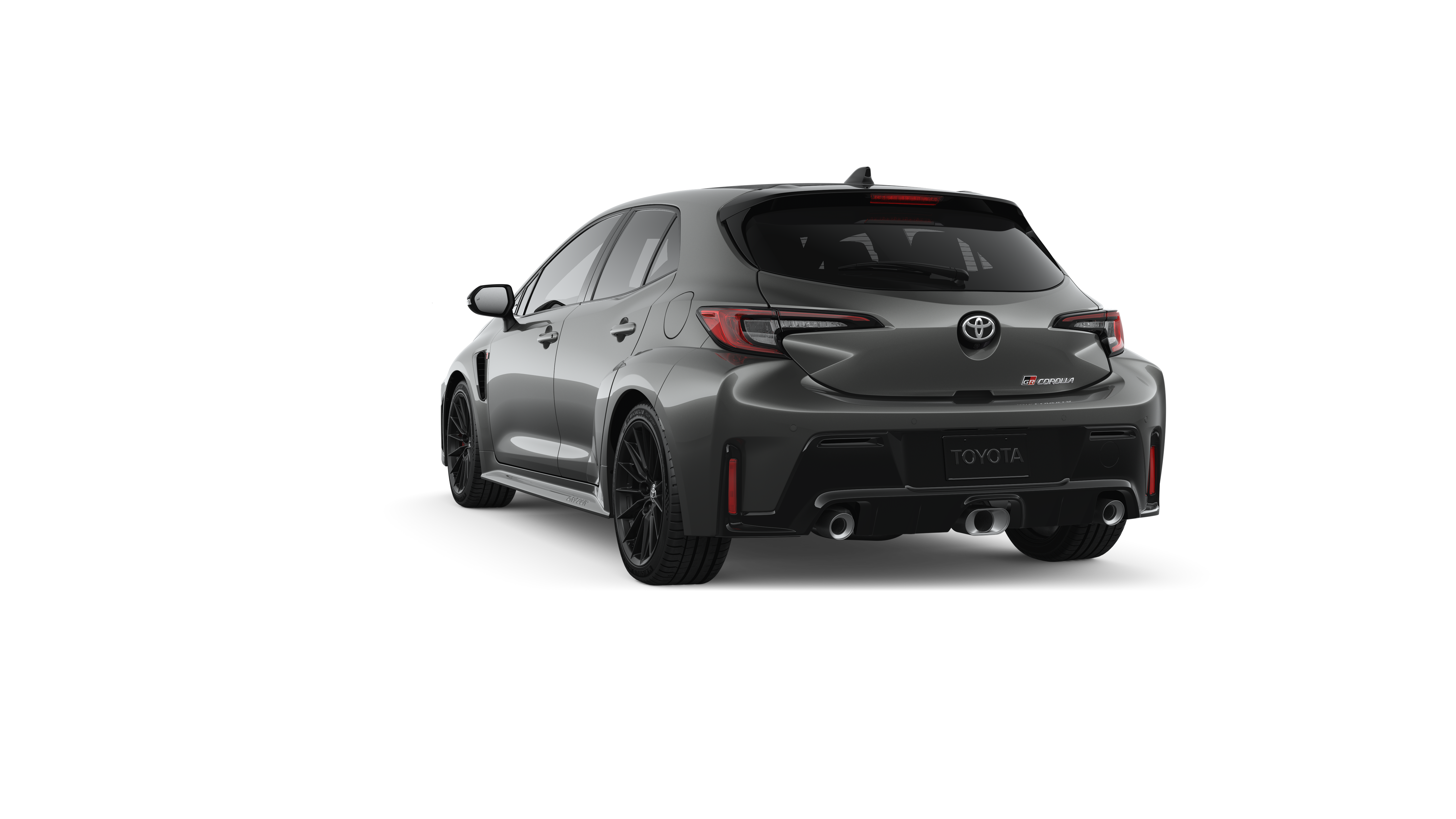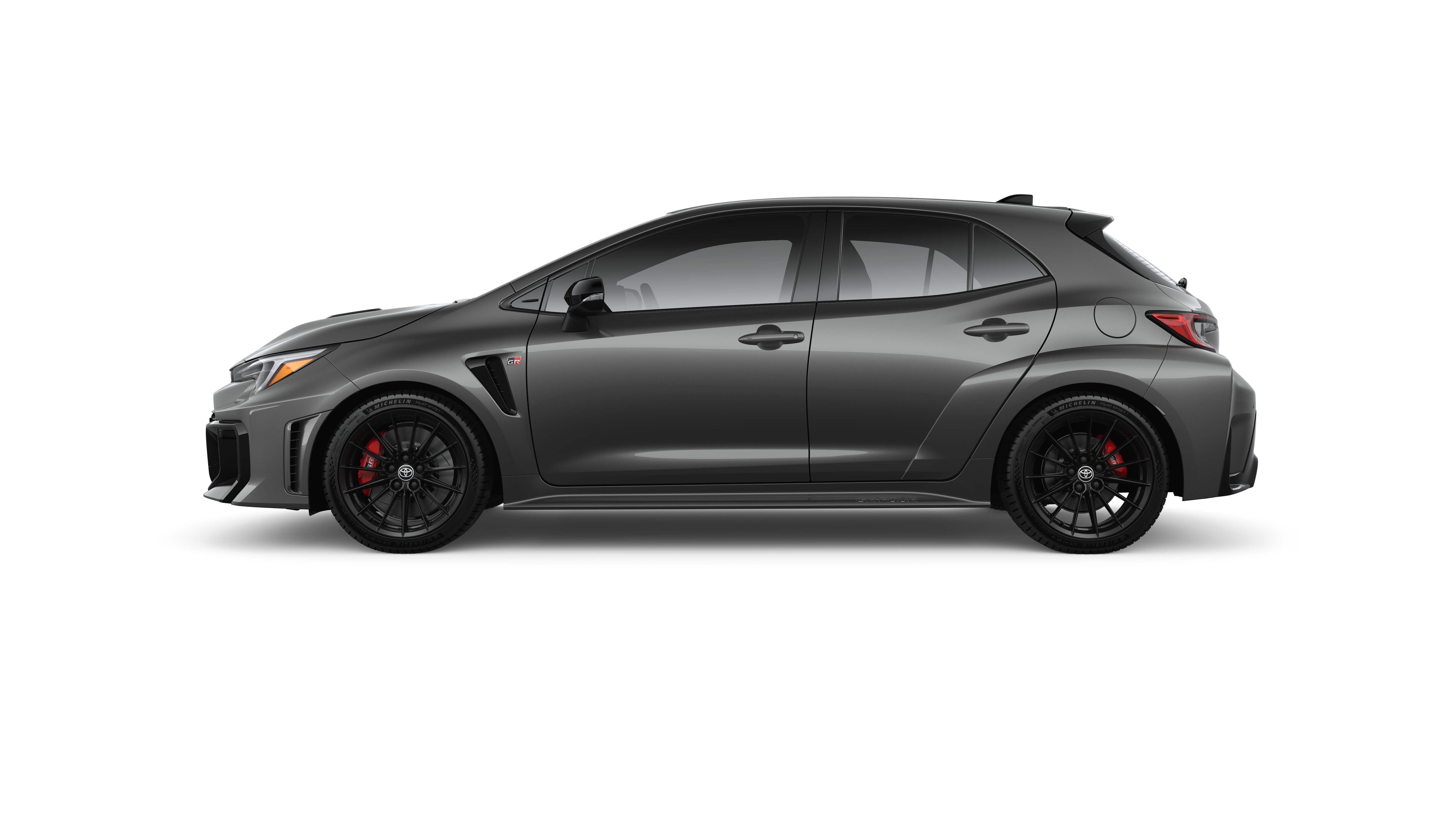 - Gloss-black front fender vent and GR badge